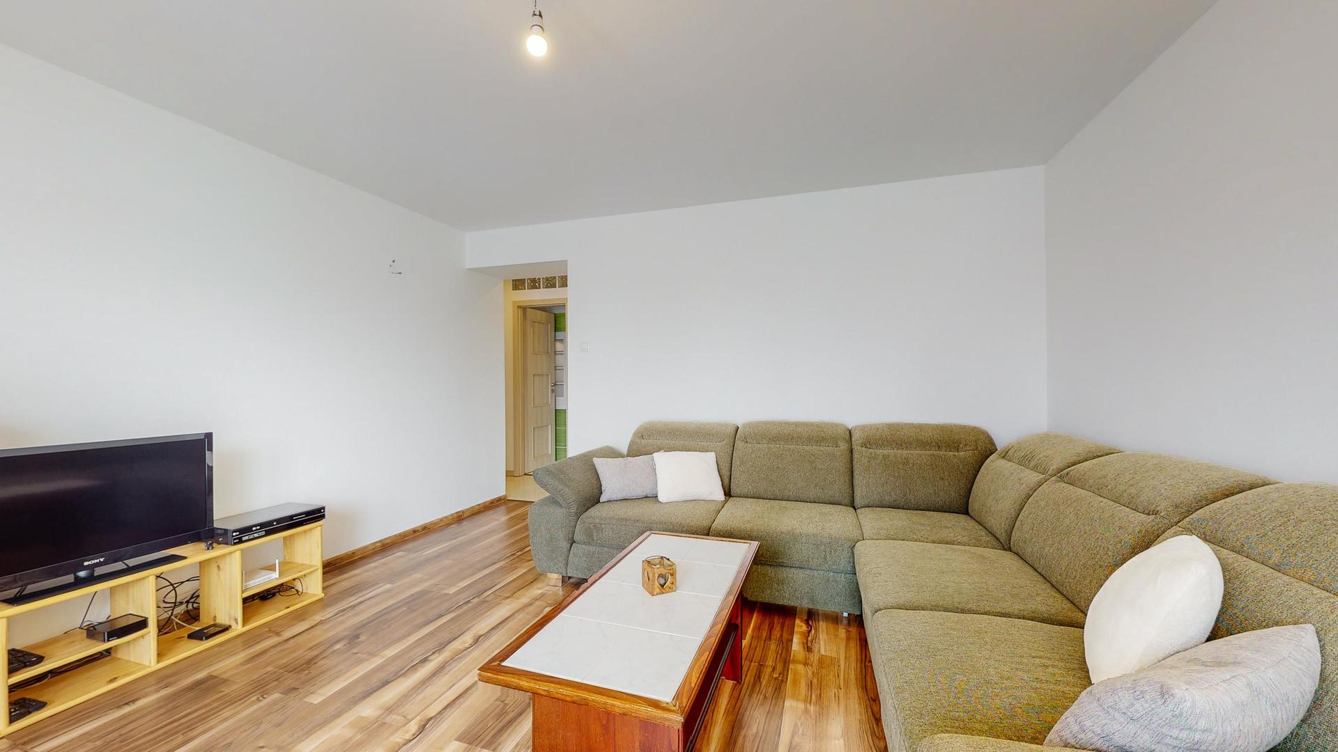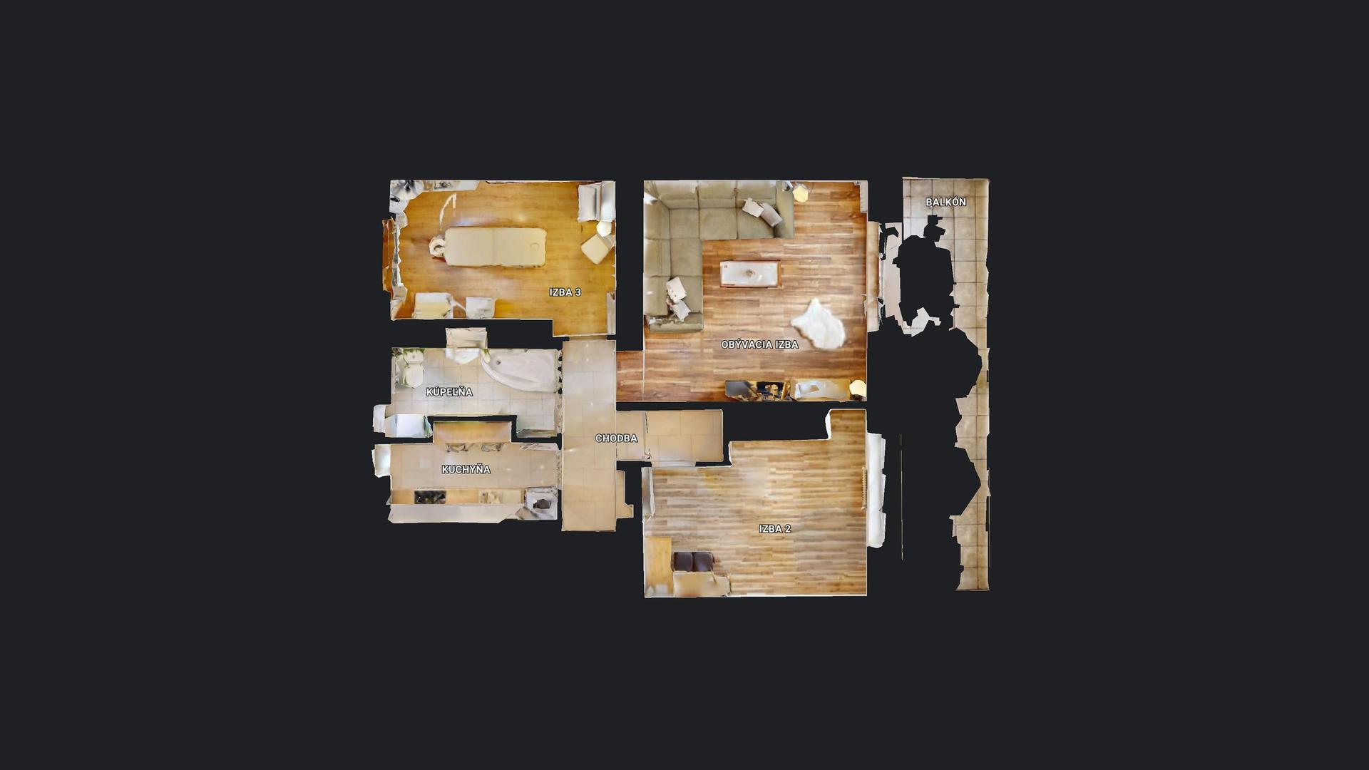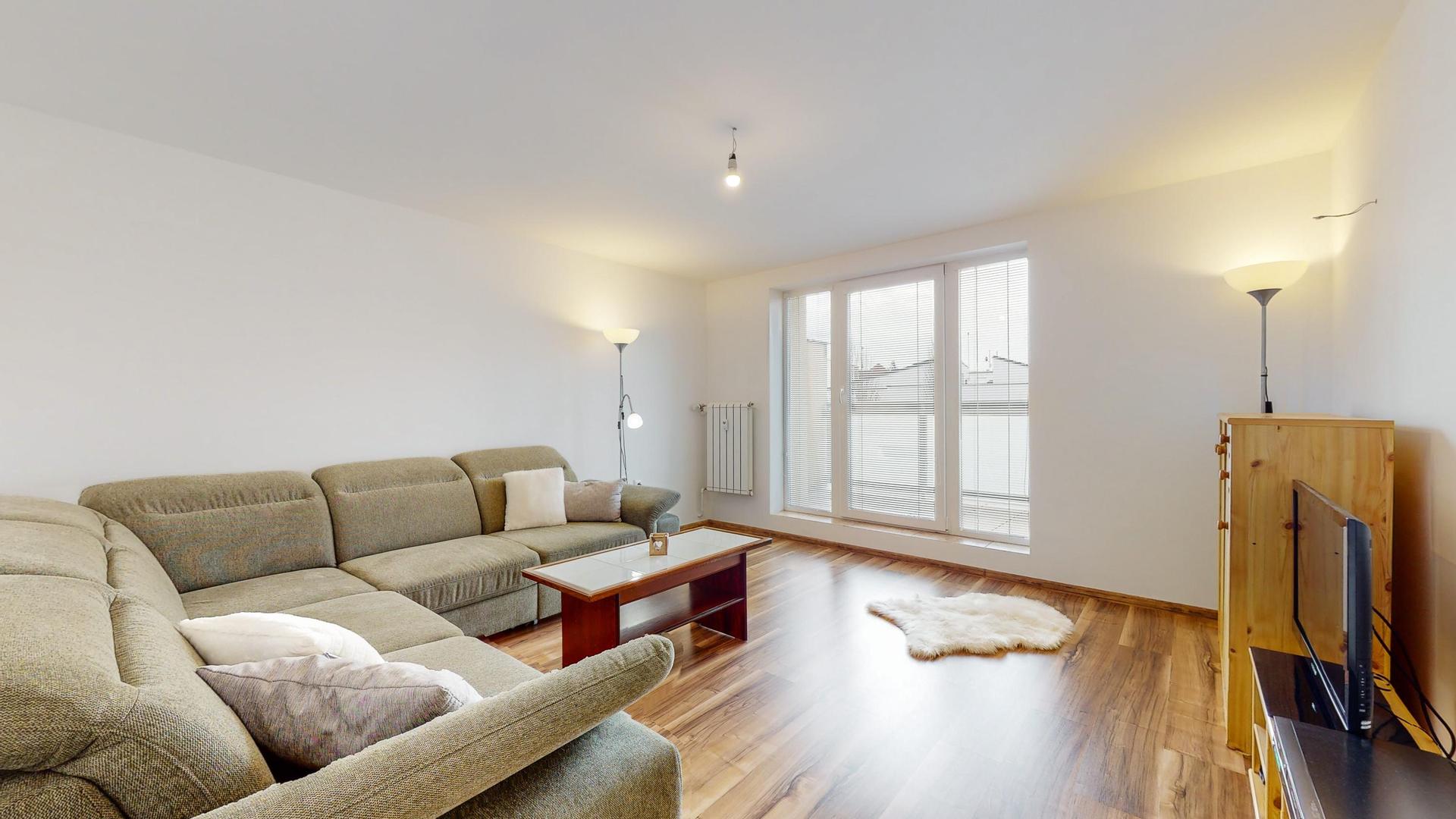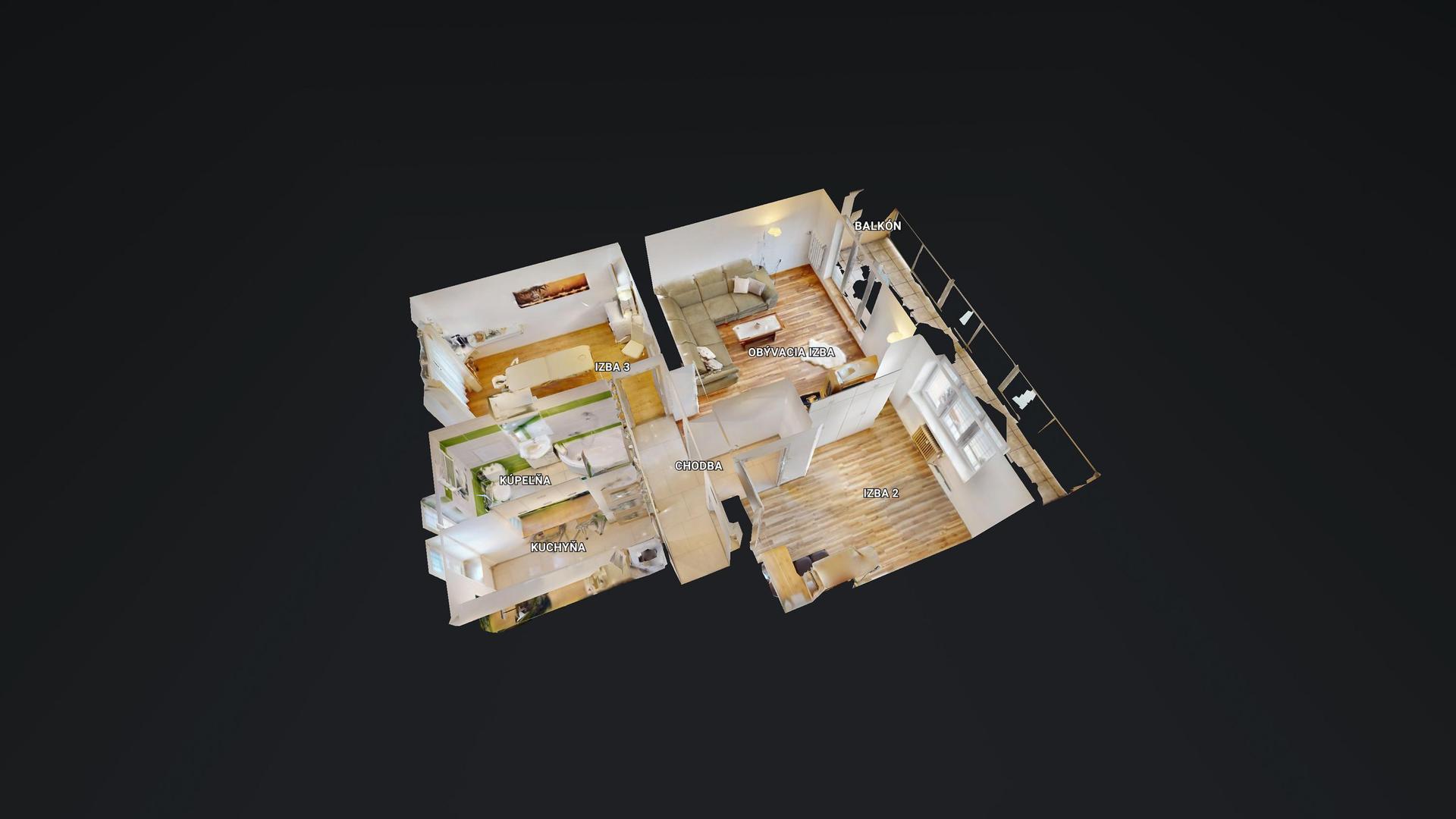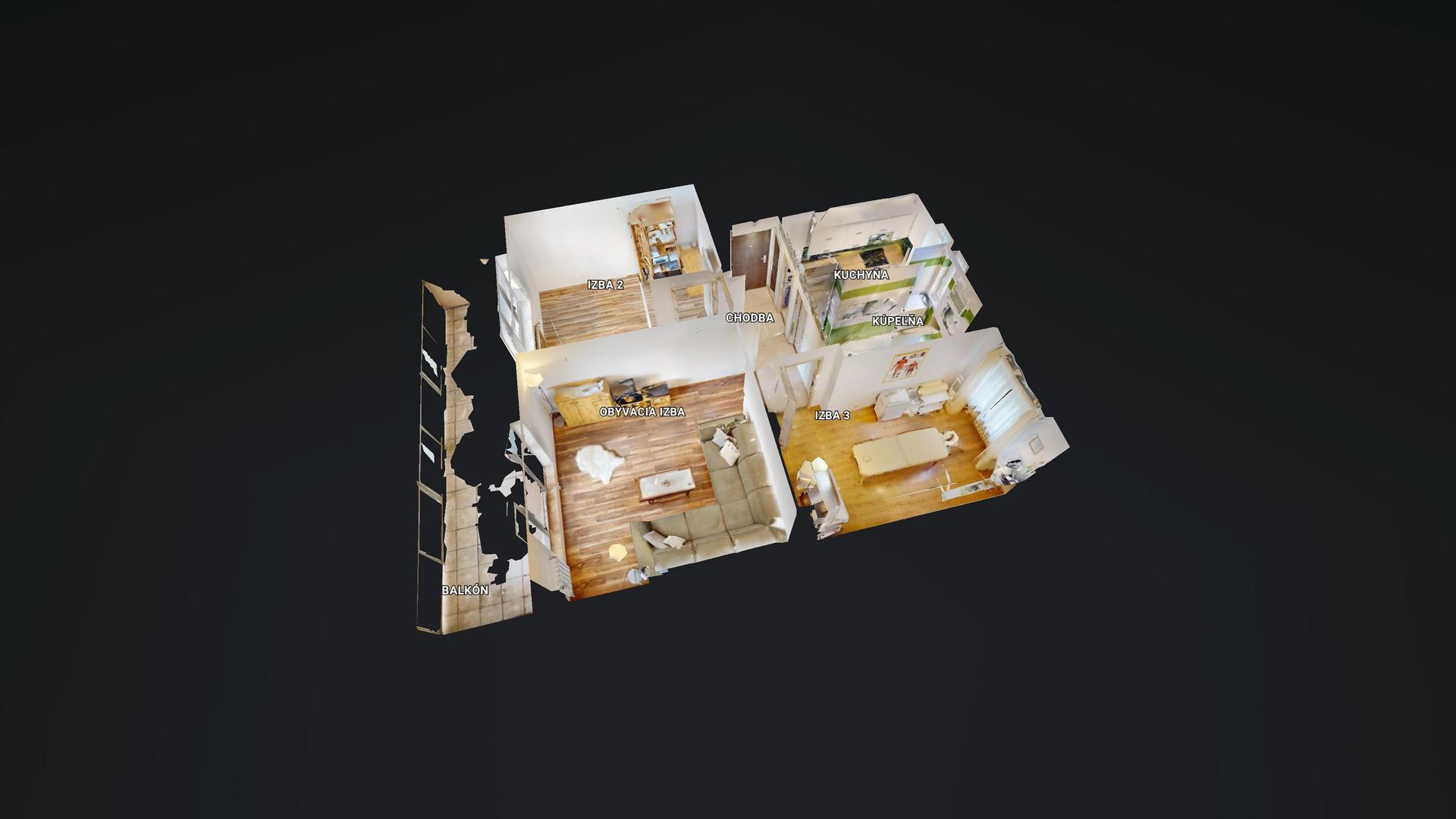 Úžitková plocha: byt 59,41 m2, naviac priestranná loggia 12 m2 (1,6x7,6m) a murovaná pivnica 3,44 m2