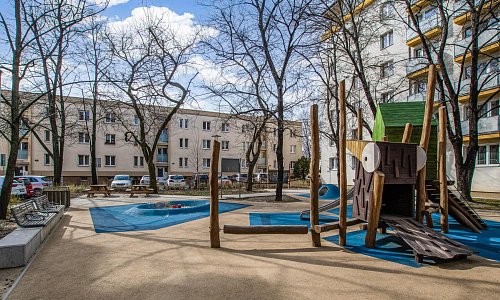 * orientovaný vo vnútrobloku (Hodžova ulica)