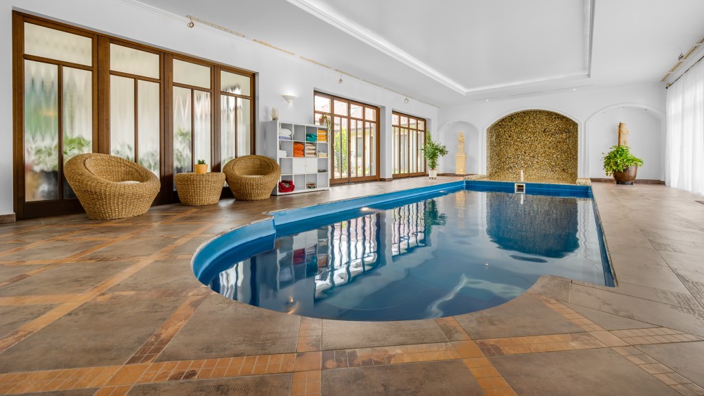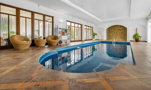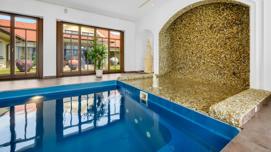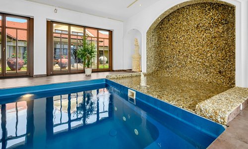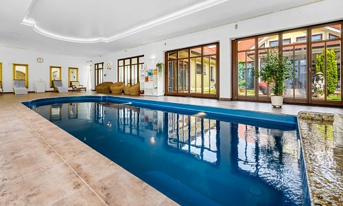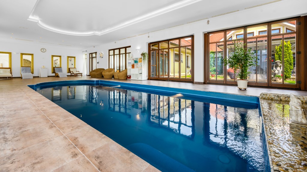 * vnútorný bazén o 12,5x4,8x1,8 m s prechodom na terasu orientovanú na južnú stranu pozemku