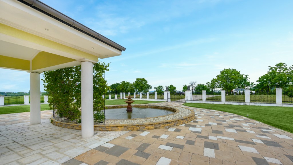 * veľká záhrada s inteligentným zavlažovacím systémom o rozlohe 5468 m2 s uzatvorenou vonkajšou okrasnou terasou, dvomi jazierkami a fontánou