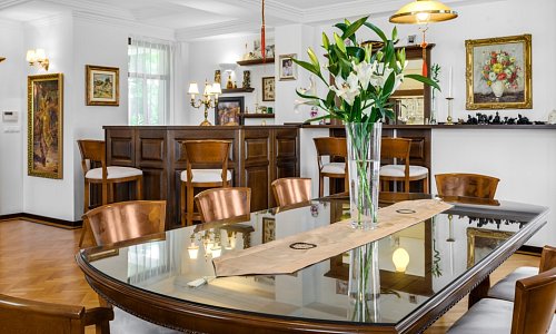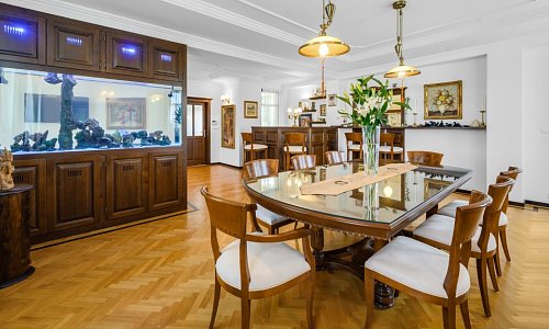 This mansion is situated near Piešťany. The location secures uninterrupted relax. Thank to its high quality and outstanding architectural design this mansion will suffice even for an extremely demanding client. The estate can also be used as an investment opportunity, embassy residence or a representative residence of a company.