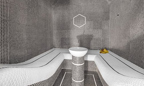 * Outside terrace with heated pond and a fountain offering uninterrupted relax