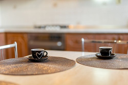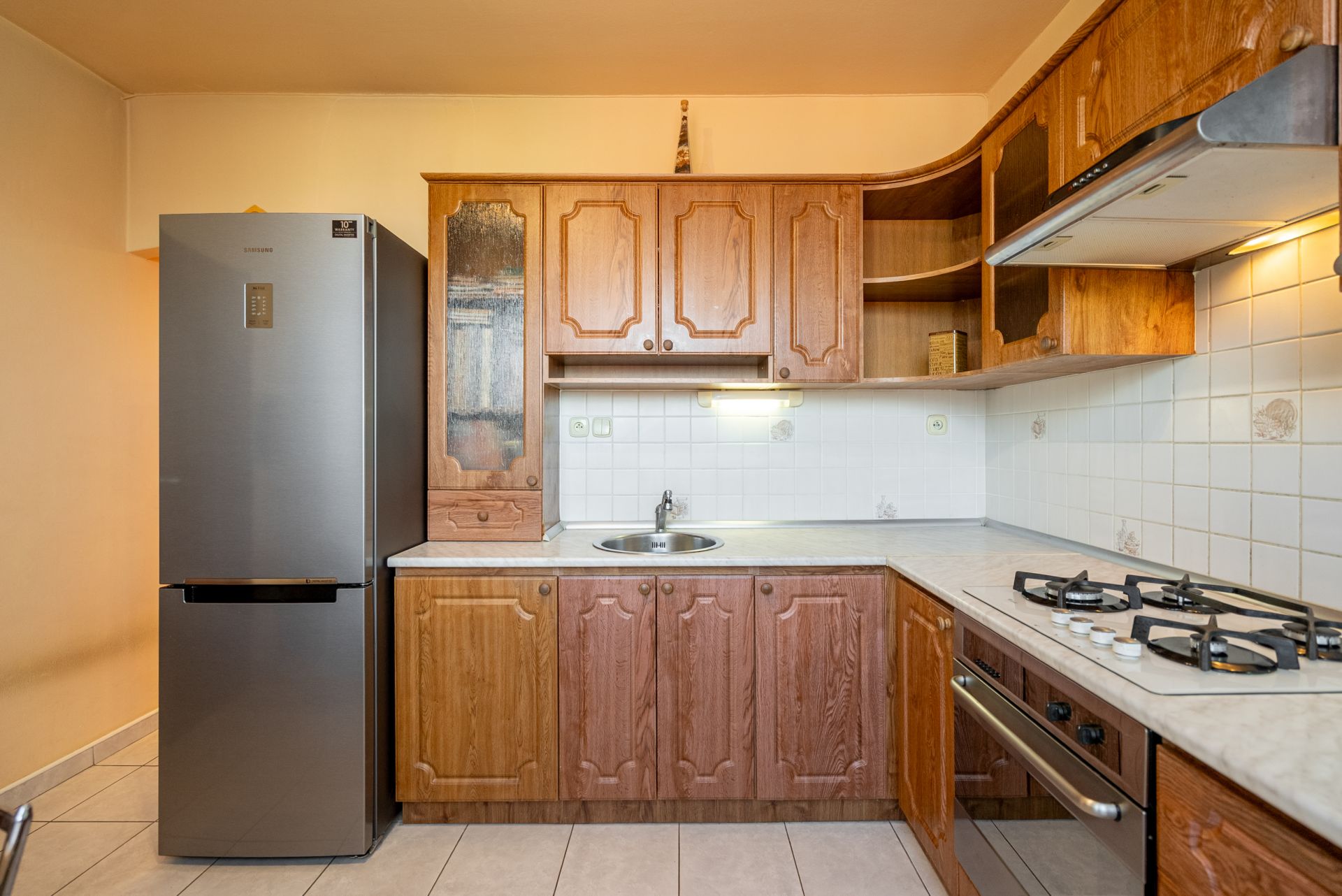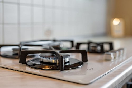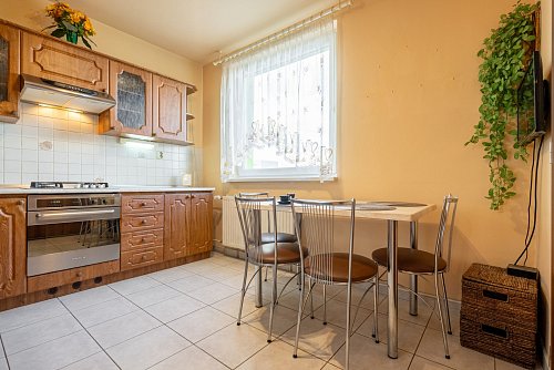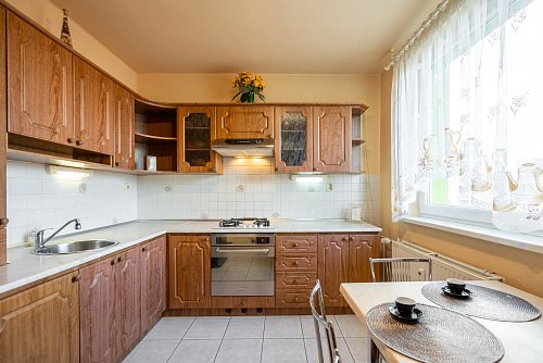 - kuchynská linka mieru so stavanými spotrebičmi – plynová varná doska, elektrická trúba,