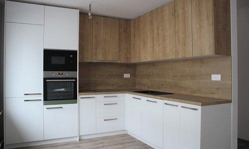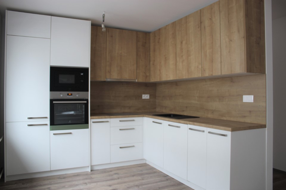 * kuchynská linka na mieru so spotrebičmi – digestor, varná doska, elektrická rúra, ľadnička s mrazničkou, umývačka riadu – všetko značky Elektrolux