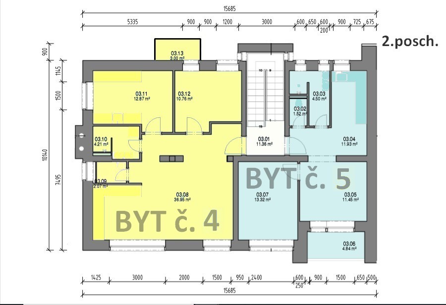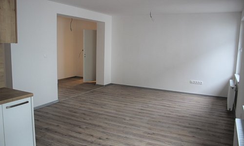 POPIS BYTU: vstupná chodba, obývacia izba s kuchyňou 36,95 m2, detská izba 12,87 m2, spálňa s balkónom 10,76 m2, kúpeľňa so sprchovým kútom 4,21 m2, WC 2,07 m2, balkón 3 m2, pivnica 7,50 m2