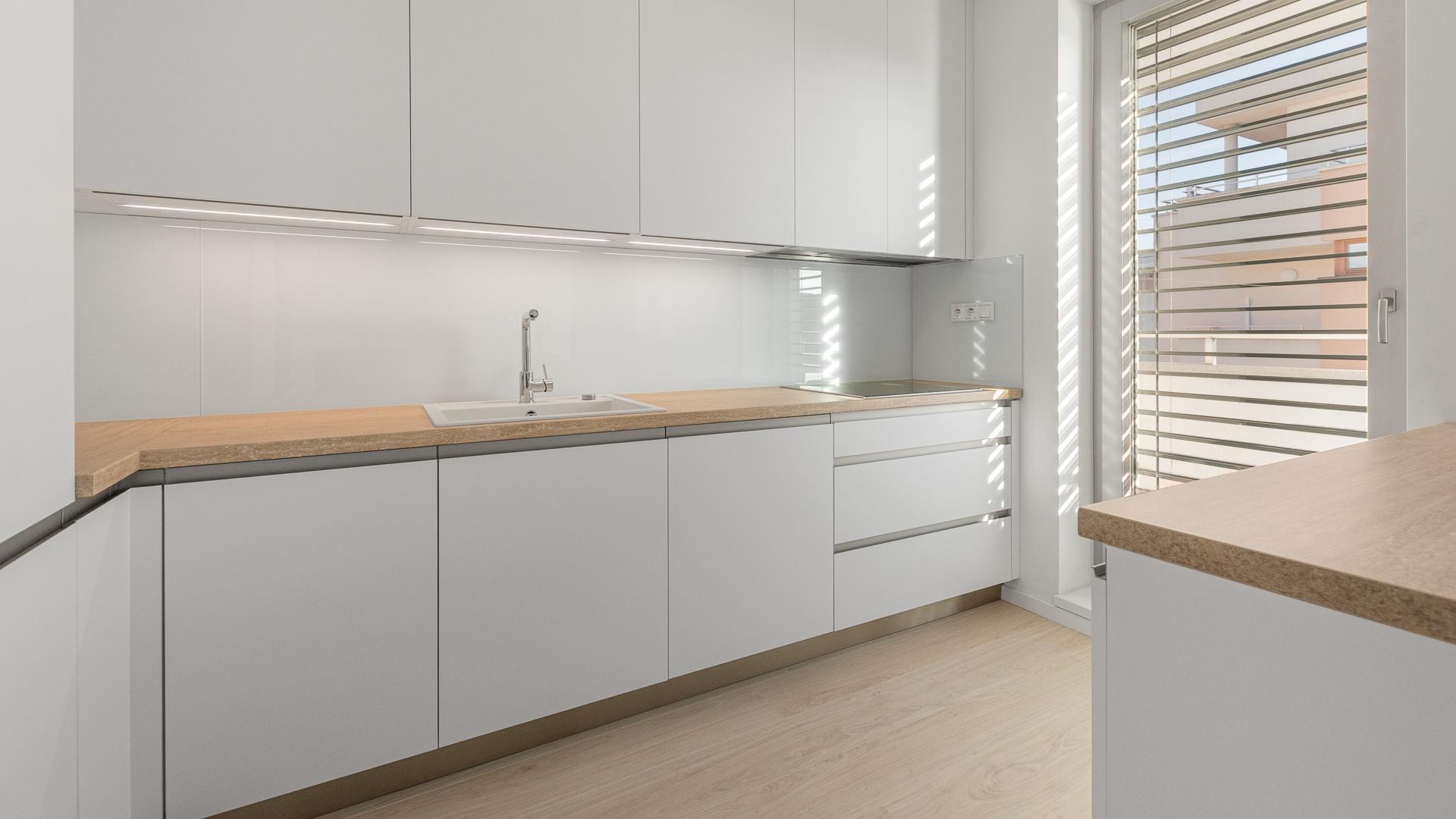 * kuchynská linka na mieru so stavanými spotrebičmi (elektrická rúra, sklokeramická varná doska, umývačka riadu, chladnička s mrazničkou)