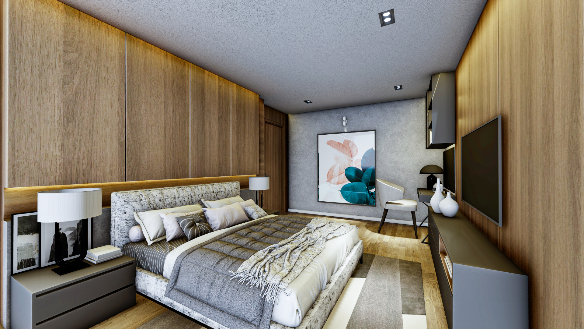 Rannú kávičku si môžete vychutnať na balkóne, na ktorý sa vchádza zo spálne a je orientovaný na južnú stranu. Spálňa má úžasnú výmeru 20,40 m2, takže sa bezproblémovo zmestí manželská posteľ, úložné priestory, možno aj pracovní kútik či priestor pre detskú postieľku.